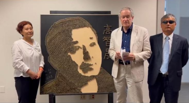 Standing next to a likeness of Human Rights Activist Gao Zhisheng are Genghe Geng (Gao’s wife), William Saunders, and Chen Guangcheng – August, 2025.